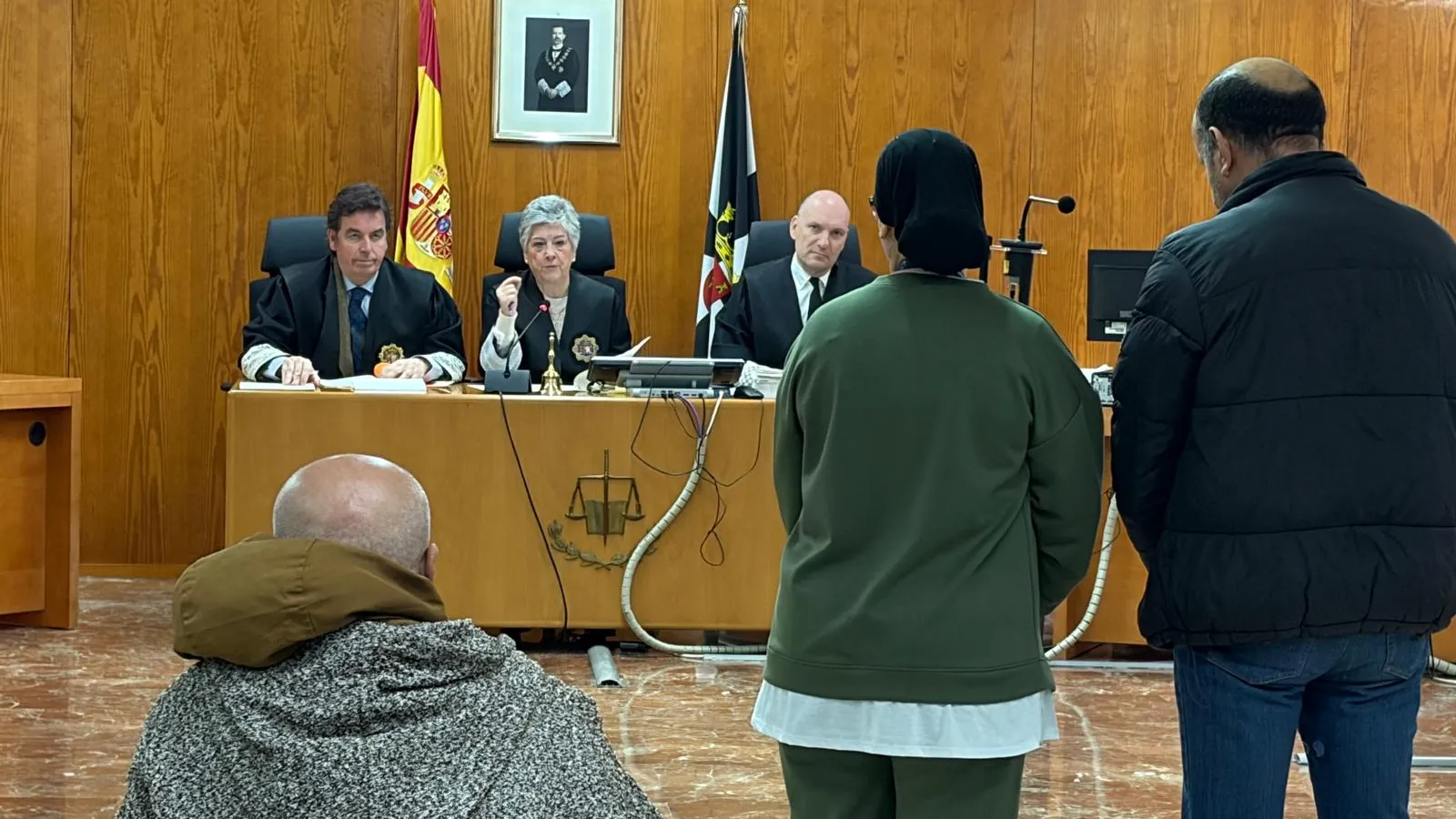 En el segundo juicio, dos varones mayores —M.E.H y A.G.— han aceptado tres años de prisión por el mismo delito contra los derechos de los ciudadanos extranjeros, pero aumentada al compararse con el primer caso por las mencionadas agravantes. Los dos hombres, que han requerido de un servicio de traducción e interpretación profesional desde la lengua árabe, cumplirán la pena privativa de libertad en principio hasta febrero de 2028 al superar las condenas los 24 meses de prisión. Uno de ellos ha comparecido esposado y conducido por agentes de la Policía Nacional.