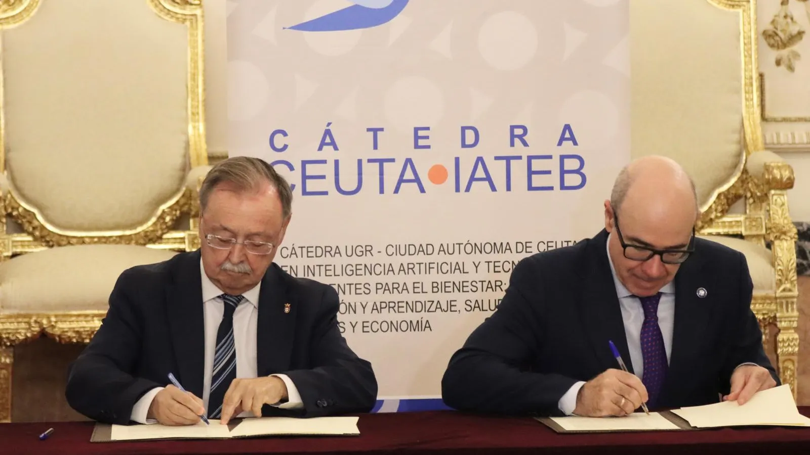 El Salón del Trono fue este jueves el escenario elegido para la firma del convenio de colaboración entre la Ciudad Autónoma de Ceuta y la Universidad de Granada (UGR), mediante el cual se formaliza la creación de la Cátedra CEUTA-IATEB en Inteligencia Artificial y Tecnologías Emergentes para el Bienestar, dirigida por el profesor Fernando Trujillo Sáez y ubicada en el Campus Universitario de Ceuta. Sin duda, otro paso más para seguir creciendo en ese modelo económico digital en la que nuestra ciudad cada vez está cogiendo más peso. Así lo reconocen los profesionales del sector a nivel nacional e internacional y así lo demuestran las cifras de los últimos años, tras el extraordinario trabajo que se viene realizando por parte de la Consejería que lidera Kissy Chandiramani.