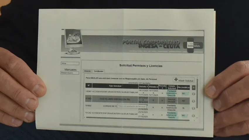 Este diario ha podido comprobar que el trabajador generó dos solicitudes de permiso por accidente, enfermedad grave o intervención quirúrgica de un familiar de primer grado en el portal corporativo que tiene INGESA para este tipo de trámites: Intranet. La primera fue creada el 25 de octubre -por la operación de la madre- y la segunda el 10 de noviembre -por el accidente del padre-. El estado de solicitud de ambas se encontraba “pendiente de autorización de la dirección” este mismo martes, cuando el profesional realizó la captura que ha podido ver este periódico. En los dos procedimientos se explicita que “no” están pendientes de justificar.