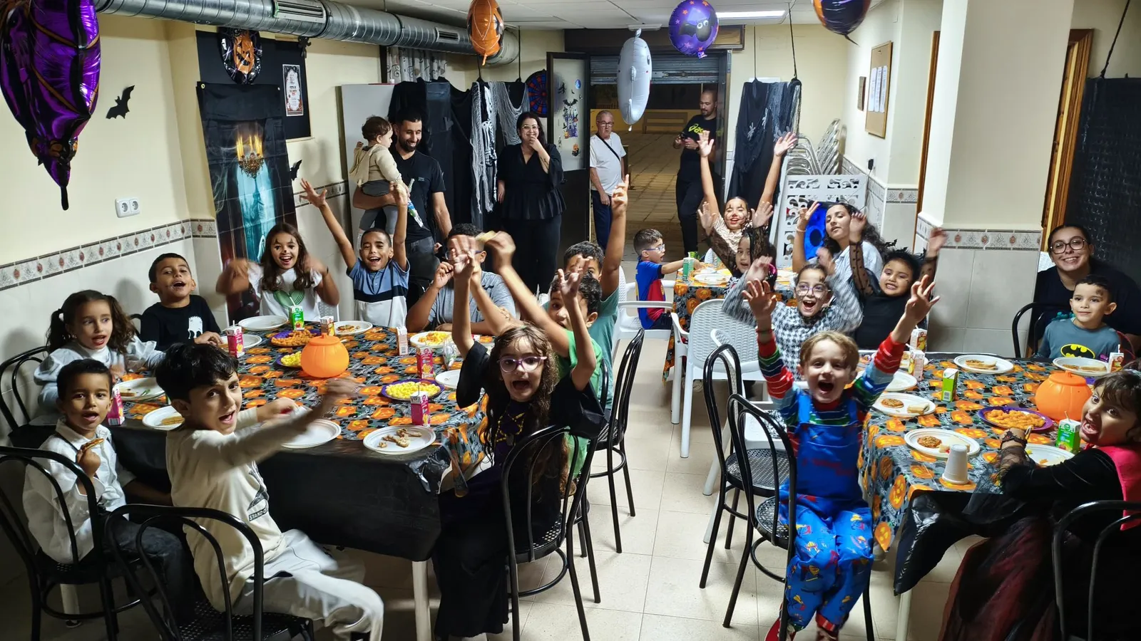 Niños y mayores disfrutan de Halloween en el local social de la barriada entre disfraces, talleres y meriendas llenas de color y buen ambiente