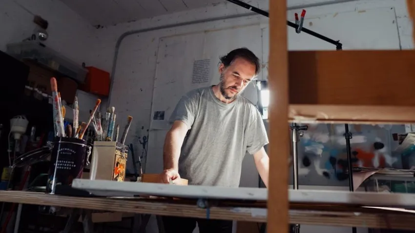El artista sevillano, que inició su carrera artística en 2000, suele trabajar en grandes formatos sobre lienzo o tabla empleando múltiples materiales como espráis, acrílicos, pasteles, óleos y aportando técnicas diferentes como el collage
