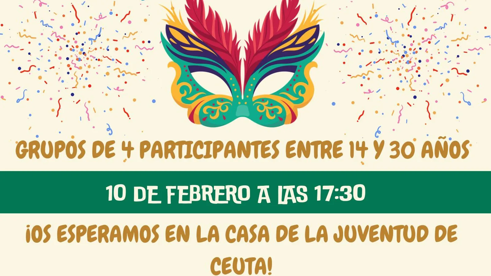 La actividad, dirigida a residentes en Ceuta de entre 14 y 30 años, se celebrará el 10 de febrero y combinará creación artística, trabajo en equipo y letras carnavaleras con premios en vales y trofeos