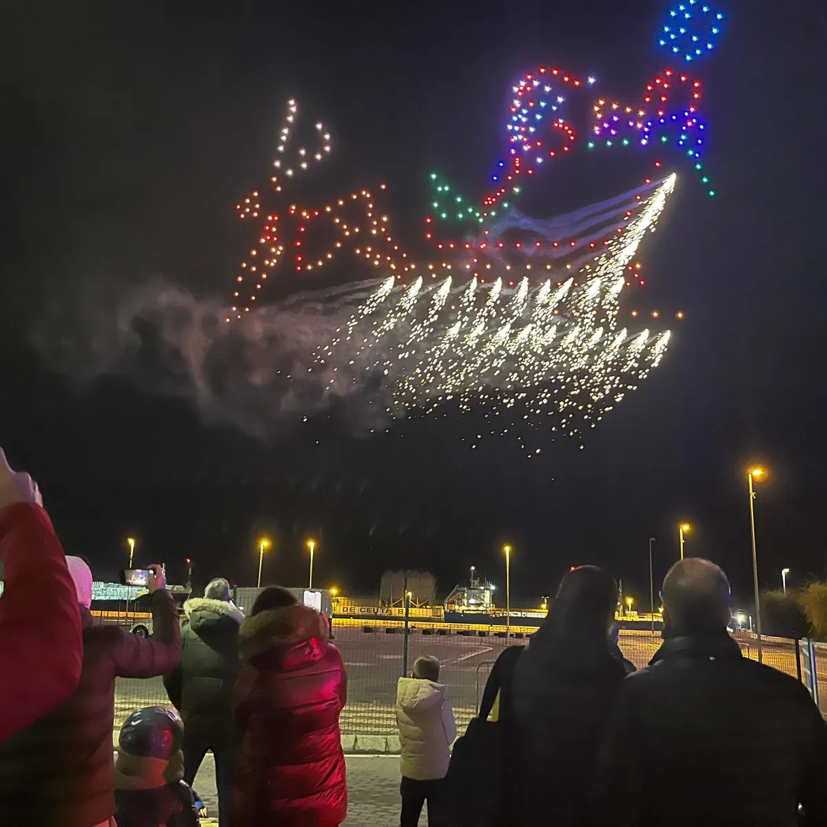 Ceuta/ Ceuta vivió en la noche de este jueves, 1 de enero, una cita inédita con la tecnología y el arte al celebrarse el primer pase del espectáculo de luces con drones organizado para despedir 2025 y recibir el nuevo año. Cientos de ceutíes se dieron cita en el entorno de La Marina, donde desde primeras horas de la tarde comenzaron a concentrarse para asegurar un buen lugar desde el que disfrutar del evento, que resultó todo un éxito pese a las bajas temperaturas.
