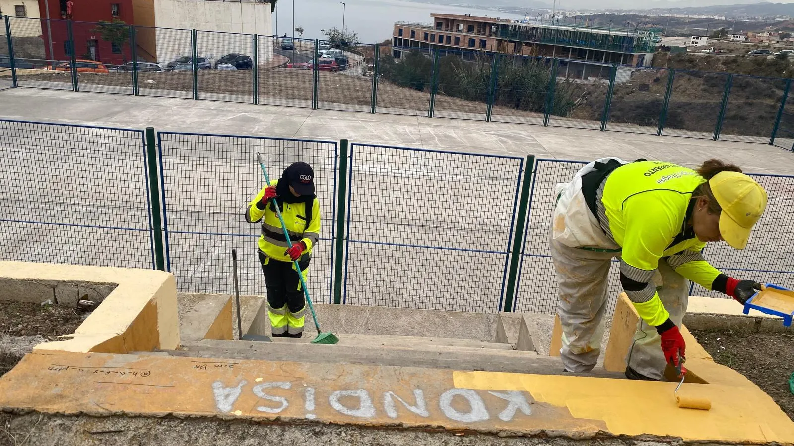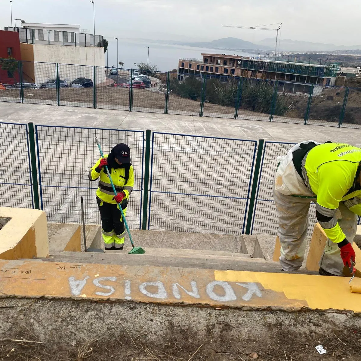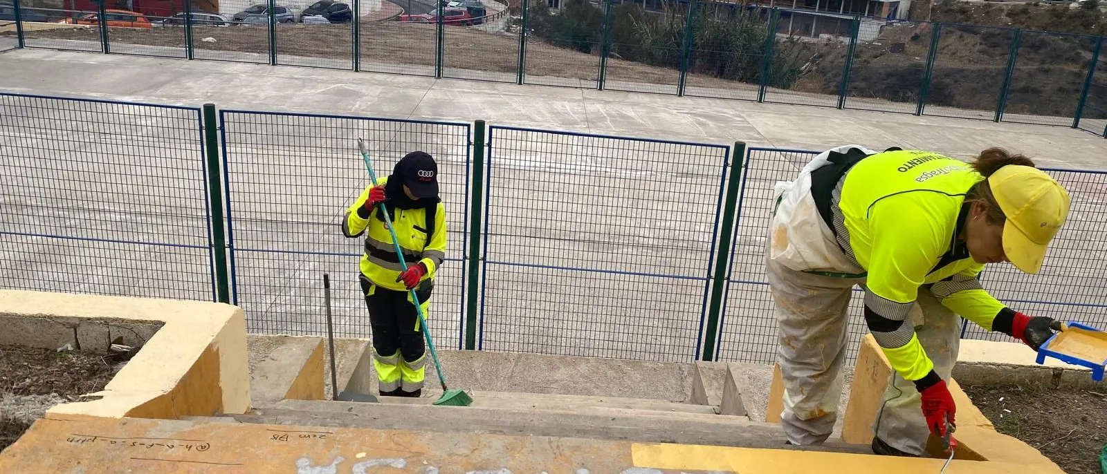 Este plan de trabajo ha llevado ahora al equipo asignado a estas tareas hasta la barriada Parques de Ceuta, donde han empezado a actuar en sus zonas ajardinadas. En Vicedo Martínez, la labor ha consistido en la limpieza de todas las vaguadas y taludes. Al mismo tiempo, se han ejecutado trabajos de pintura en muros y suelo de la parte alta de la barriada y de los alrededores del centro de menores "La Esperanza" y la pista deportiva.