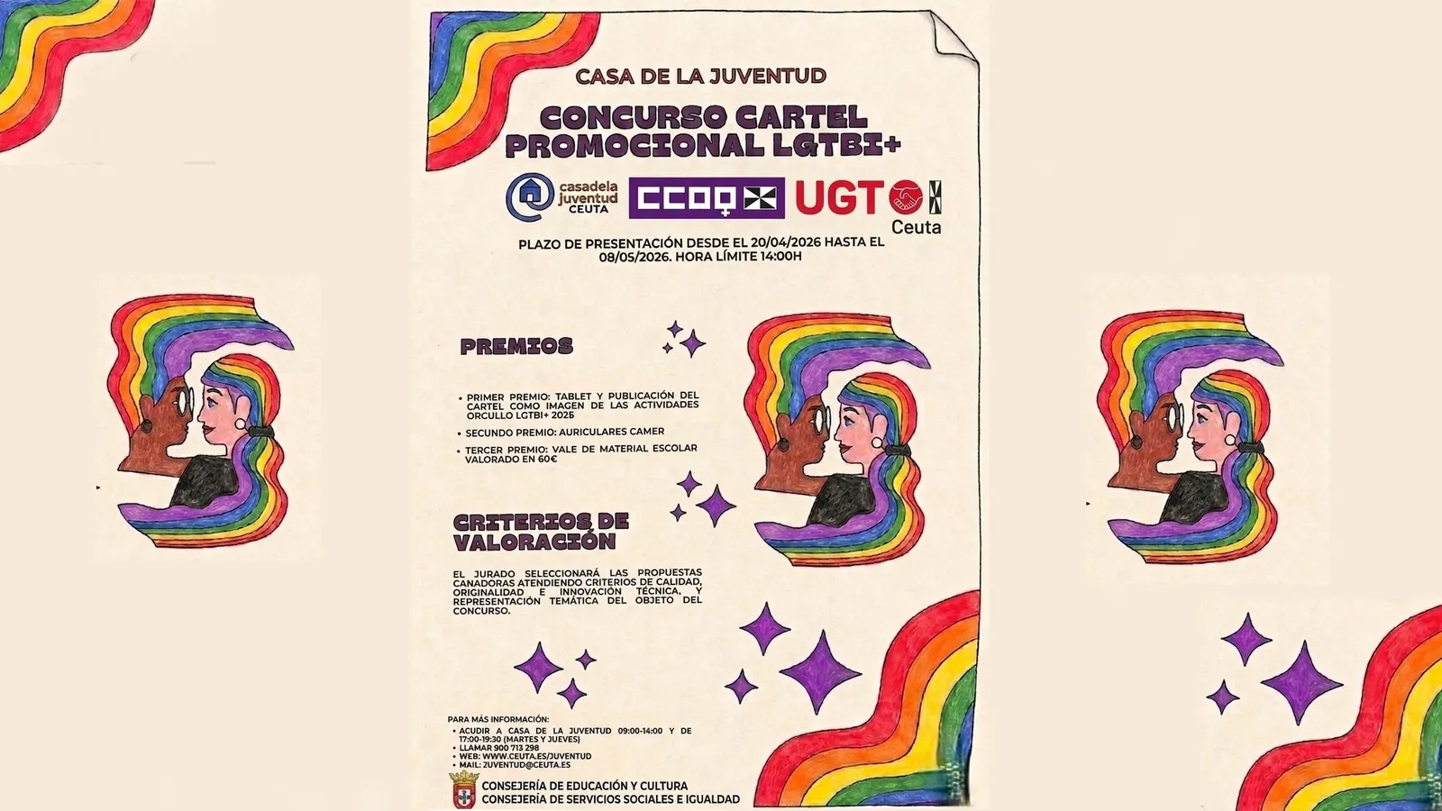 En cuanto a los premios, el cartel ganador recibirá una tablet y será la imagen oficial del Orgullo LGTBI+ 2026 en Ceuta. El segundo premio consistirá en unos auriculares gamer y el tercero en un vale de material escolar valorado en 60 euros.