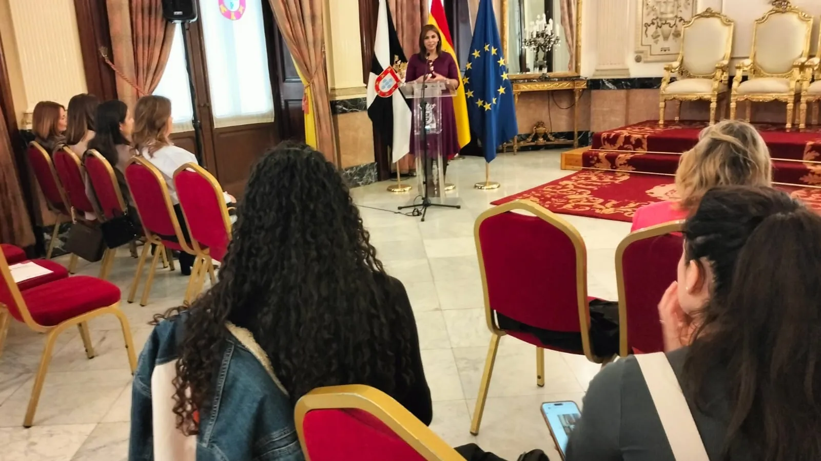 “De lo que vamos a hablar es de lo que tenemos, de lo que podemos hacer y de hasta dónde podemos llegar”. La consejera de Sanidad y Servicios Sociales, Nabila Benzina, daba hoy la bienvenida de esta manera a los participantes en el II Foro Mujer y Empleo, que se celebrará mañana en las Murallas Reales. La iniciativa está centrada en el debate del análisis y la promoción de la igualdad de oportunidades en el ámbito laboral. La recepción se ha celebrado en el Salón del Trono del Palacio de la Asamblea. El Foro está organizado por las consejerías de Sanidad y Servicios Sociales —a través del Centro Asesor de la Mujer— y de Comercio, Turismo, Empleo y Deporte, en colaboración con ETEOS Formación y Desarrollo. El acto ha contado con la presencia de la directora territorial de Empleo de la Junta de Andalucía en Málaga, Carmen Sánchez, y el director de ETEOS, José Carlos Navas. La cita será inaugurada mañana miércoles en el salón de actos de las Murallas Reales, donde desde primera hora se desarrollará un completo programa que será inaugurado por Benzina.