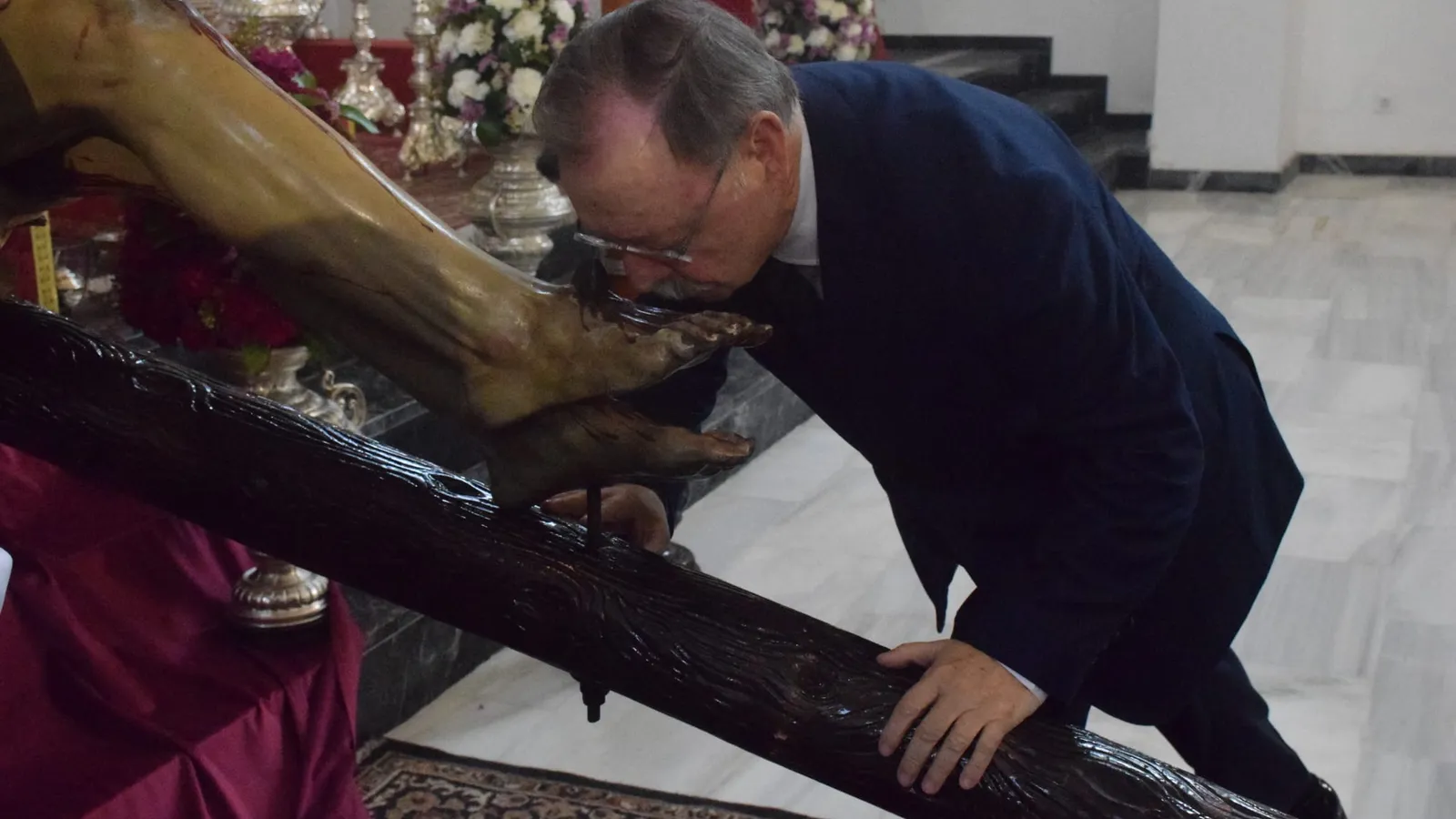 La parroquia de San José acogió este domingo el último culto por el triduo de la cofradía del Jueves Santo. Juan Vivas o el comandante de la Guardia Civil participaron en la ceremonia y el besapié