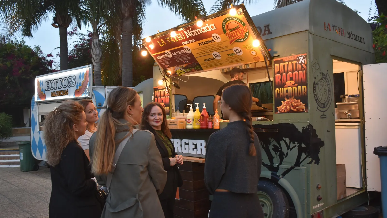 Tanto ellas como el resto de sus compañeros residen en la provincia de Málaga, donde se ubica la empresa Baobab Eventos, propietaria de las food trucks y organizadora del festival. Alrededor de toda la plaza, frente y junto a las furgonetas, han instalado alargados merenderos donde los asistentes pueden tomar asiento para degustar los platos que hayan ido adquiriendo en los puestos. Los de Melina y Alejandro, con sus dulces argentinos, y de Lucía, que, junto a su compañera Camila prepara bebidas de todos los sabores tropicales con y sin alcohol, son los primeros con los que se topan quienes acuden al festival.