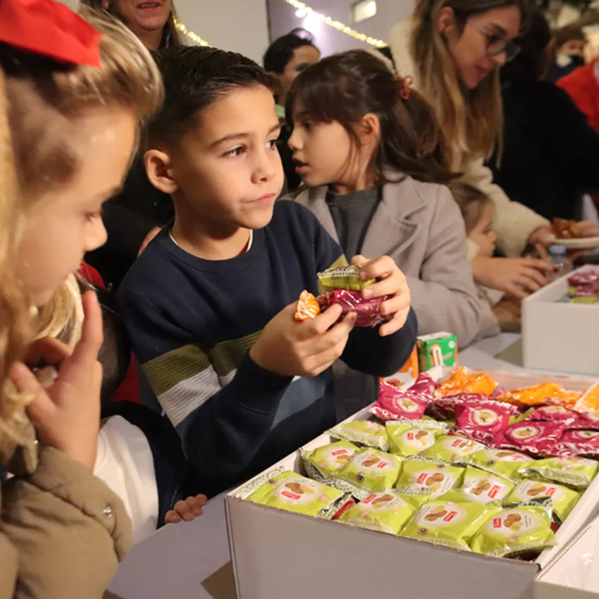 Pronto se formó una gran cola para pedir estos productos, y también otros típicos de estas fiestas como roscones o mazapanes. De la fila salían los niños felices, y algunos tenían suerte y encontraban sitio para comer en los pocos bancos de la plaza.