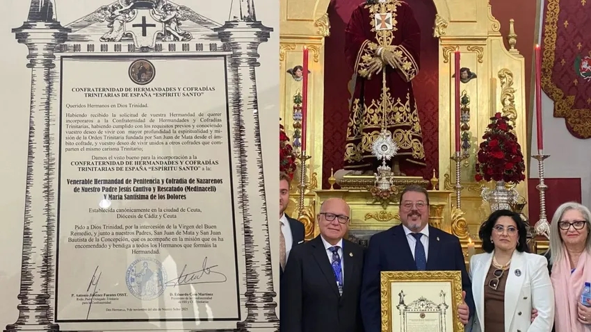 Ceuta/ La Venerable Hermandad de Penitencia y Cofradía de Nazarenos de Nuestro Padre Jesús Cautivo y Rescatado y María Santísima de Los Dolores, ha comunicado a través de sus redes sociales oficiales, que la Hermandad del Medinaceli de Ceuta ha sido incorporada como miembro de la Confraternidad de Hermandades y Cofrafías Trinitariad de España 'Espíritu Santo'.