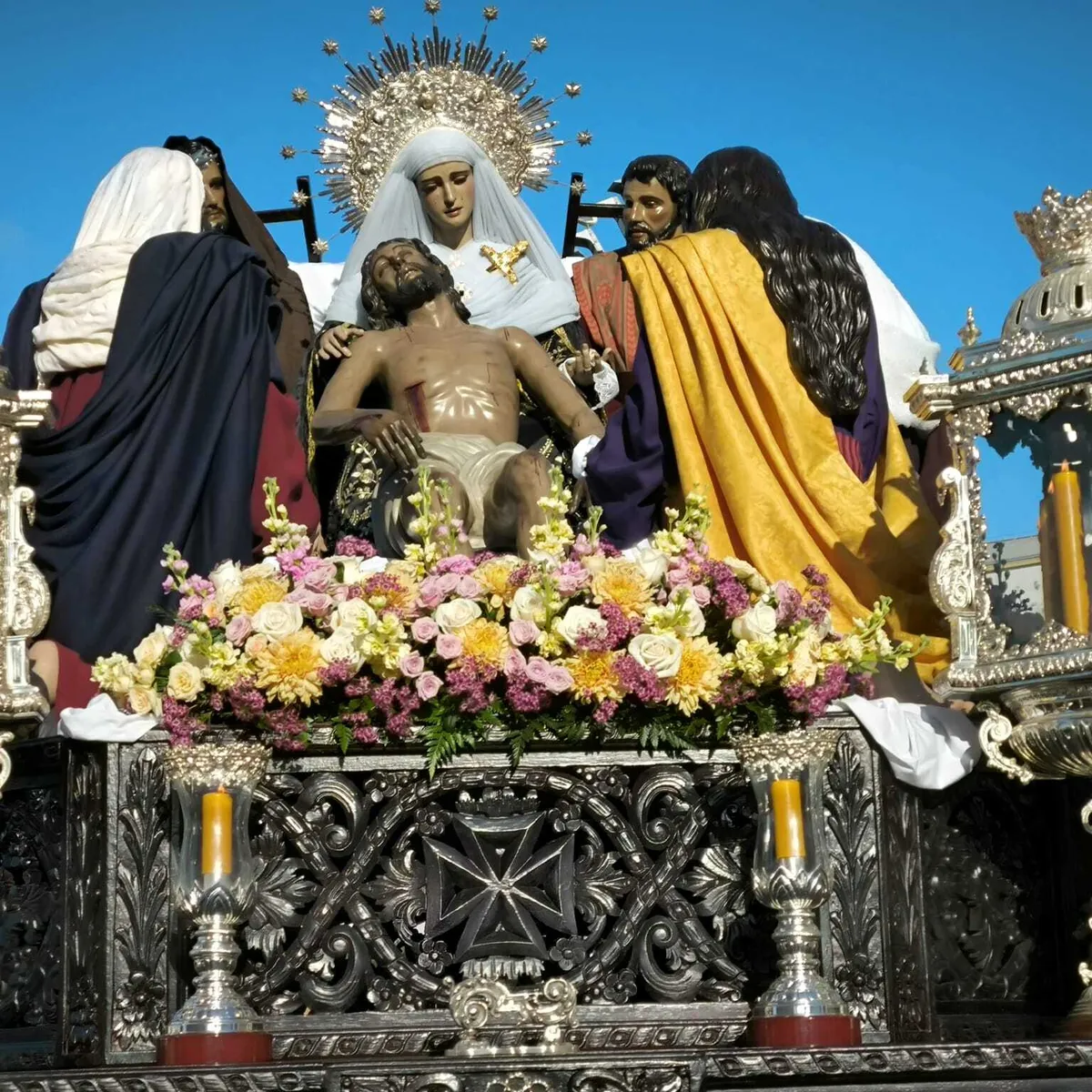 Procesiona, además, en este Viernes Santo 70 años después de la culminación del grupo escultórico, realizado por el sevillano Pineda Calderón en 1956.