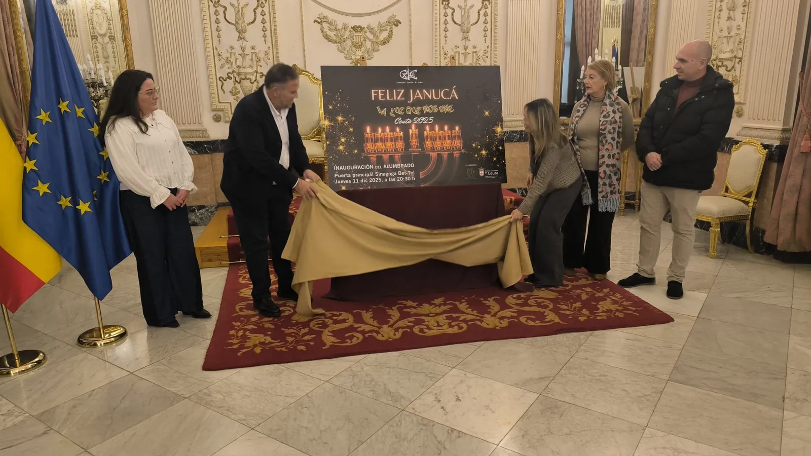 La presentación del cartel servirá de prólogo a la ceremonia del encendido especial que la Ciudad instalará junto a la sinagoga Bet-Tel, programado para mañana jueves a las 20.30 horas. El acto contará con la participación de la plantilla de la A.D. Ceuta.