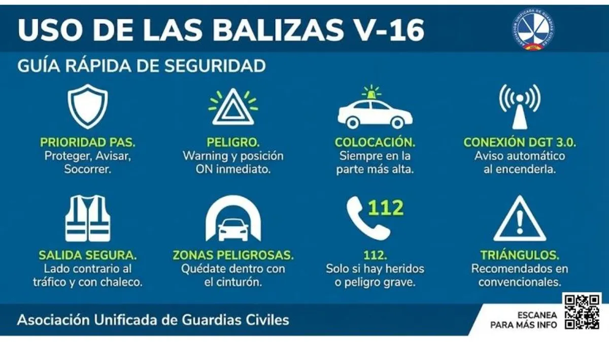 Una vez asegurada la zona y la integridad física, se deberá avisar al 112 si existen heridos o si la situación requiere la intervención de los servicios de emergencia o de los agentes de la autoridad. Aunque la DGT ha limitado su uso en vías de alta capacidad, desde la Asociación Unificada de Guardias Civiles (AUGC) se sigue recomendando el empleo de los triángulos en carreteras convencionales, siempre que puedan colocarse sin riesgo y fuera de la calzada. En tramos con visibilidad reducida, como curvas cerradas o cambios de rasante, pueden aportar un plus de seguridad si las condiciones lo permiten.