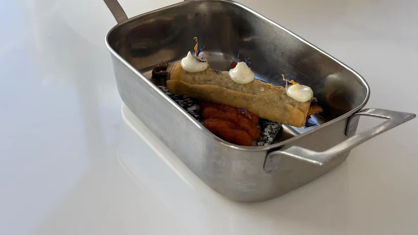 La tapa ganadora, titulada ‘Crujiente del Estrecho’, consistió en un boquerón sobre una regaña de carbón negro envuelto en pasta filo y acompañado de confitura de tomate, acompañado de mayonesa de lima.. El chef elaboró la propuesta en directo ante el público y el jurado, que valoró la técnica, la presentación y el sabor de las tres tapas finalistas.