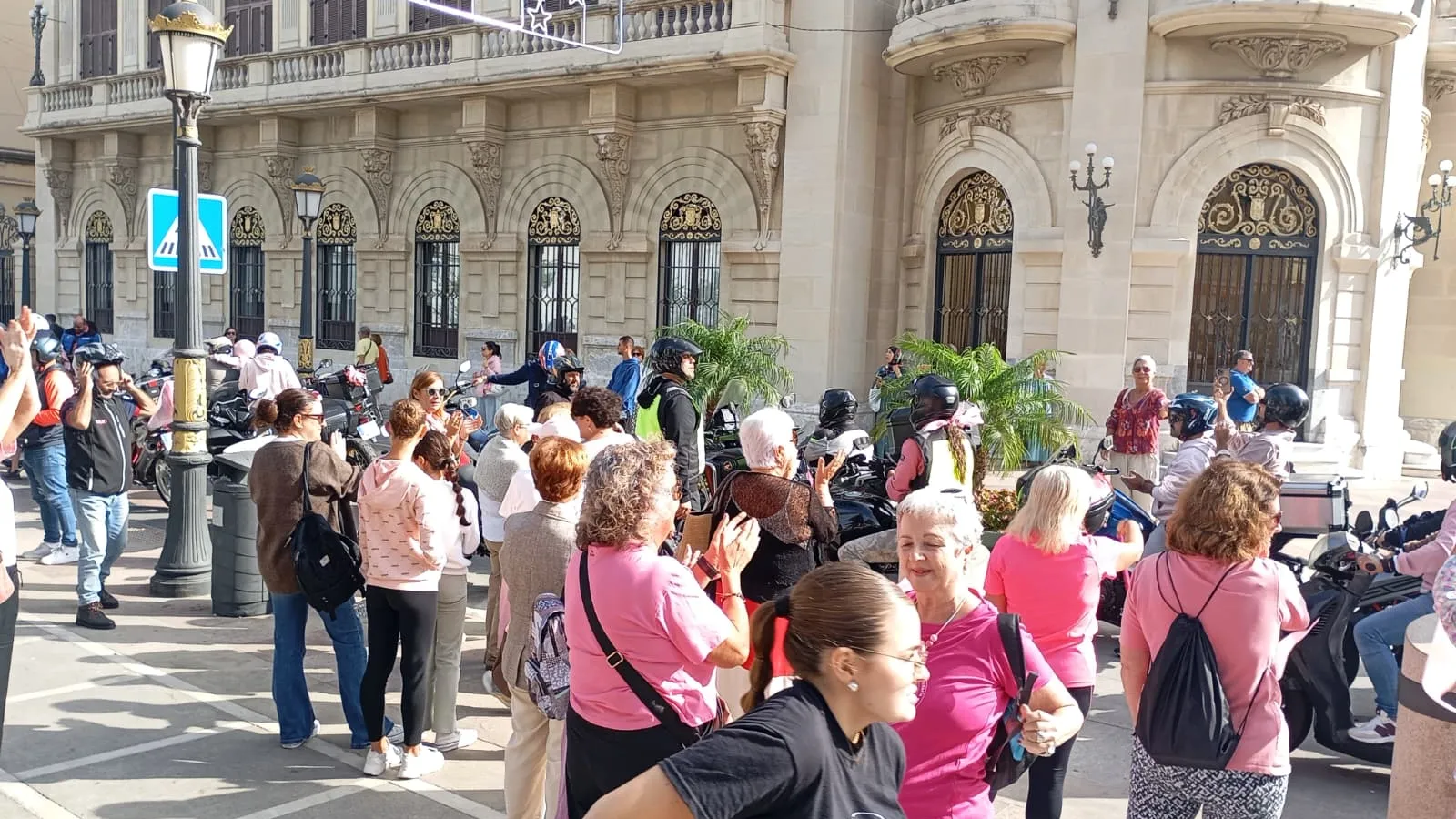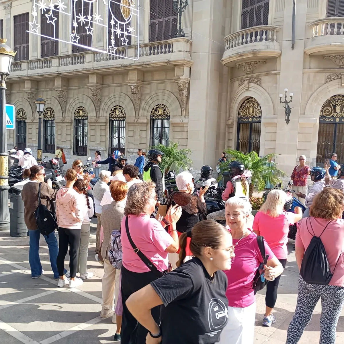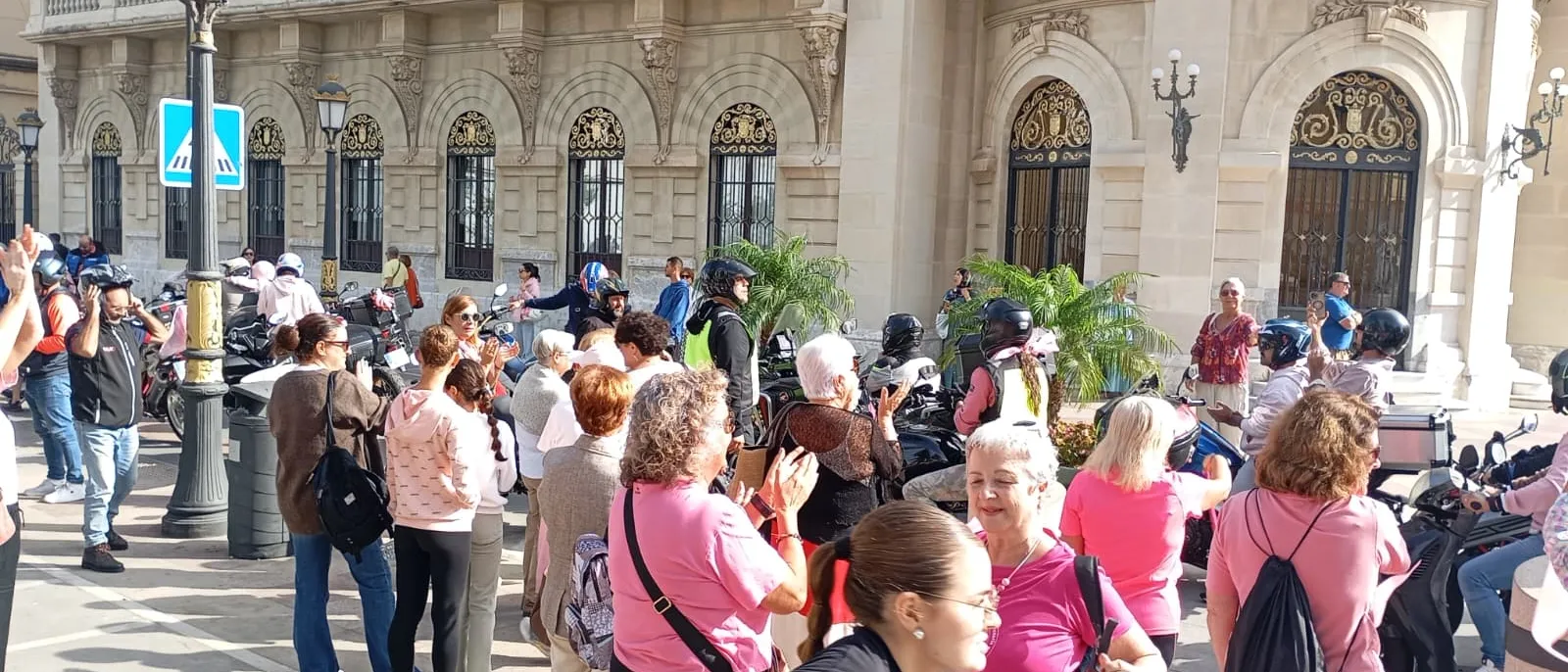Al mediodía, las campanas de la Iglesia de Nuestra Señora de África suelen reinar. Este domingo no: el ruido de un buen puñado de motos se mezcló con la llamada a la misa de mediodía. Nada que lamentar: mucho que celebrar. Los moteros, todos, con pañuelito rosa practicando el deporte que más les gustas. Ellas recibiéndoles en la Plaza de África alzando los pañuelos rosas, que se han convertido en un símbolo de esperanza y determinación.