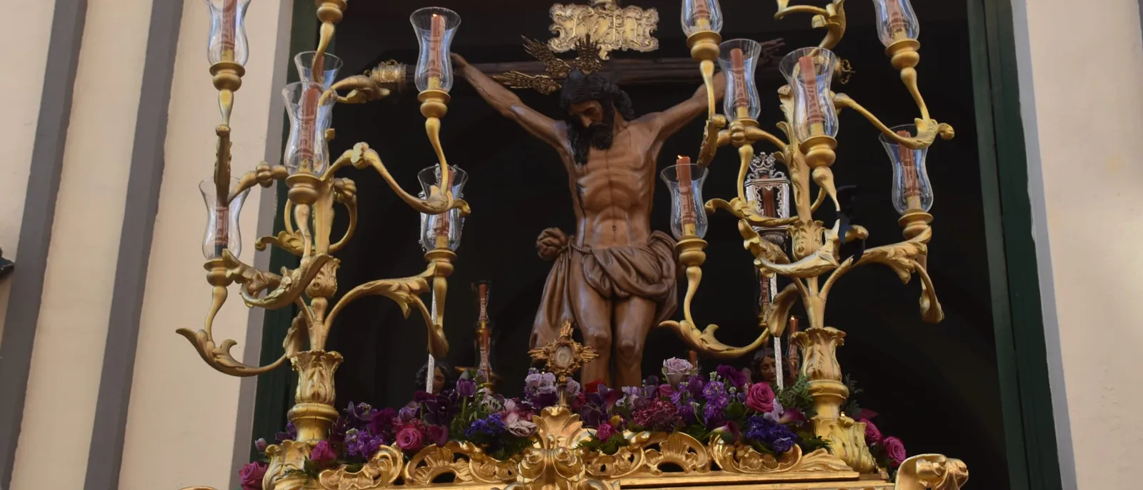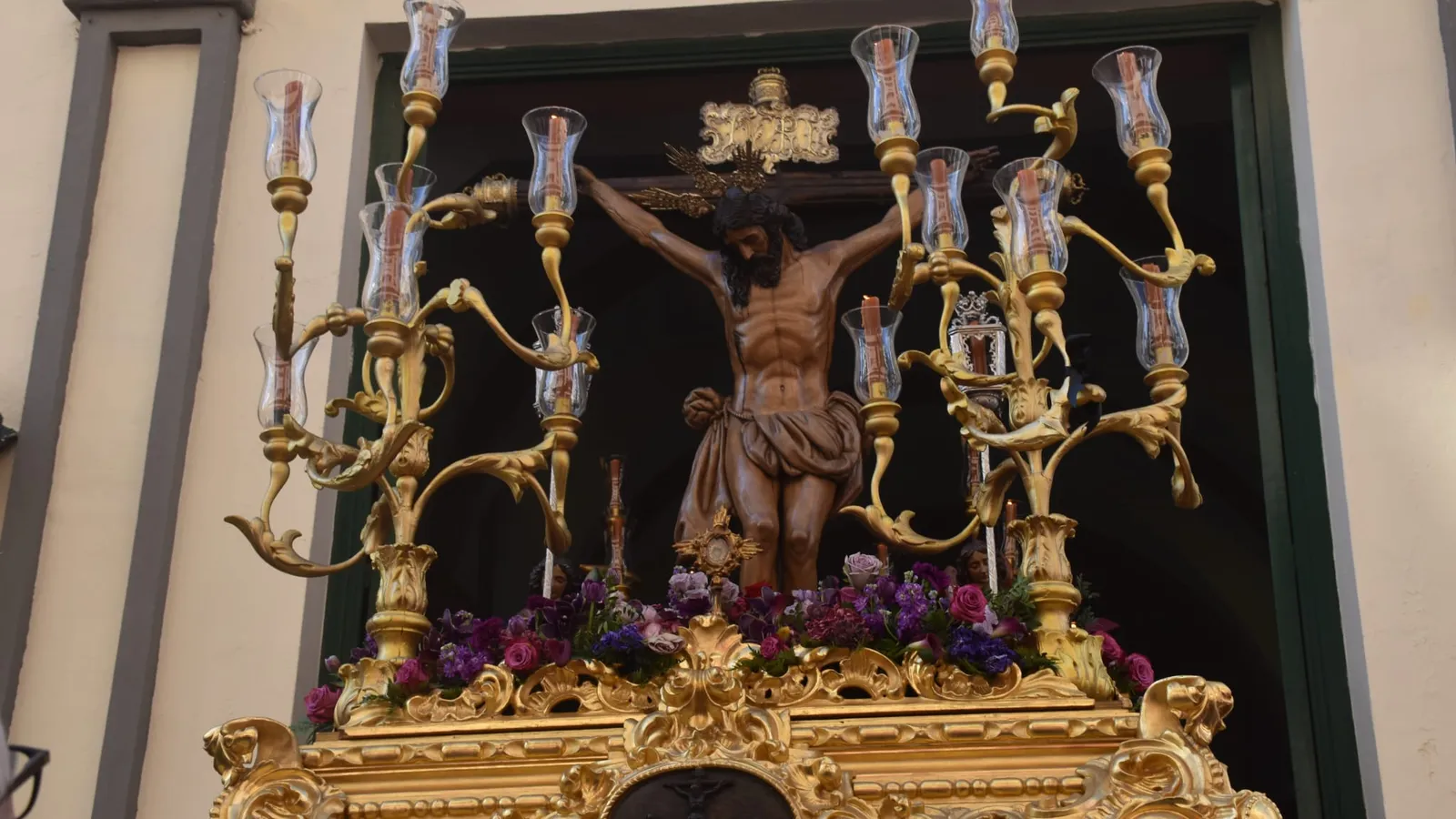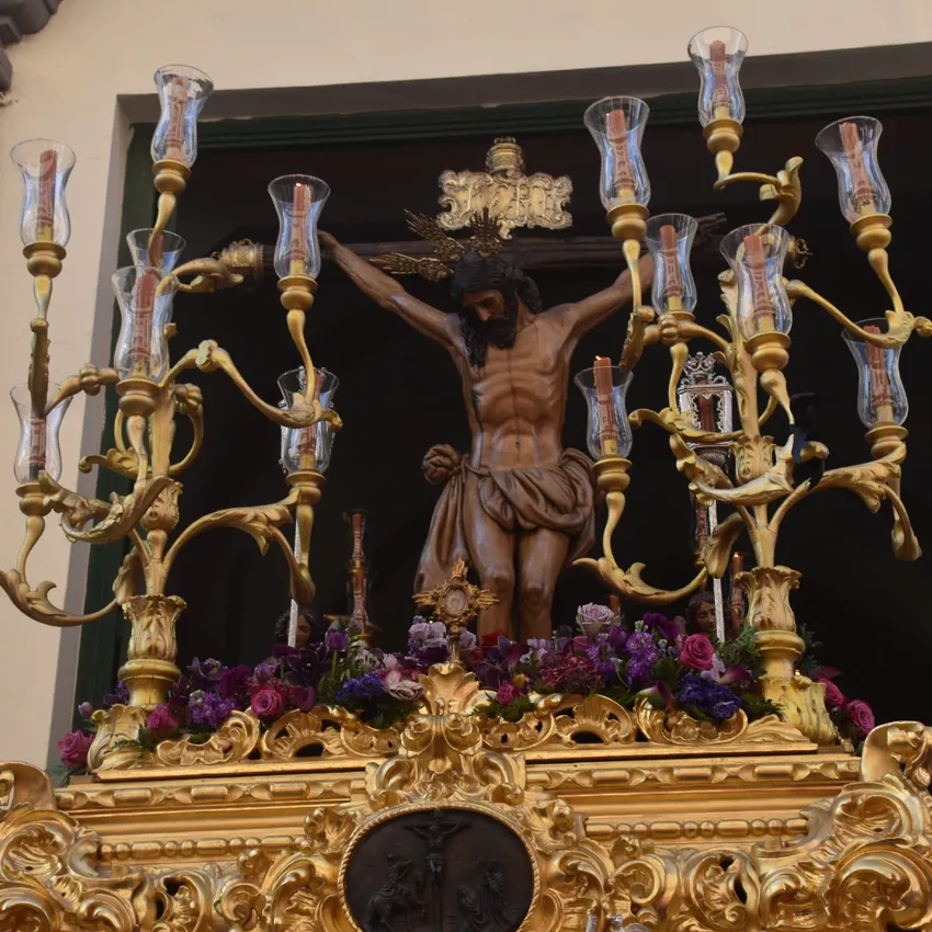 Este viernes no ha sido una excepción. La Hermandad se ha visto arropada por los fieles en la primera salida de la tarde. No ha faltado el recuerdo a algunas personas que ya no están. Caso de la abuela de dos costaleros, "que era muy devota de este cristo, que se lo vamos a llevar al cielo para que le de un beso en la cara", proclama un costalero bajo la trabajadera.