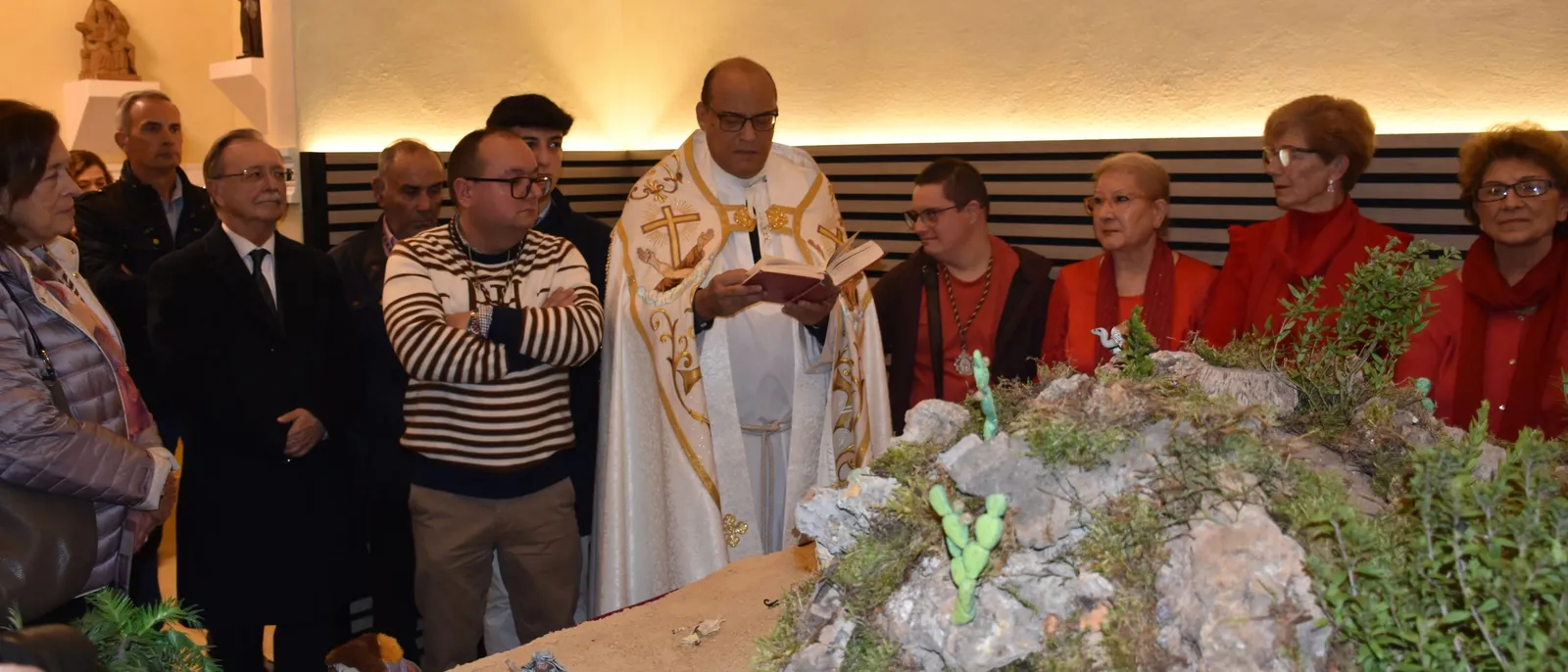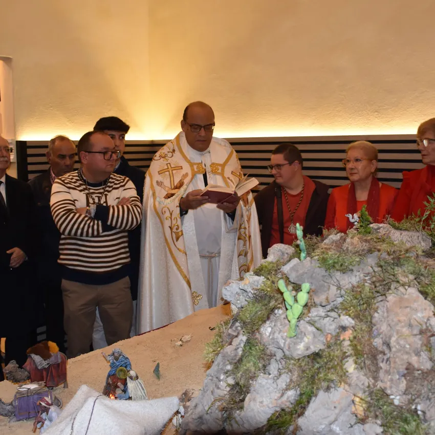 El ritual católico de la bendición del diorama ha corrido a cargo del sacerdote Miguel García Jaramillo. Apenas unos minutos antes, el Coro de San Antonio introducía el acto entonando un villancico. Los asistentes al acto de inauguración han podido disfrutar también de una chocolatada servida en la zona exterior de la sala de usos múltiples donde se ha celebrado la ceremonia de la bendición.