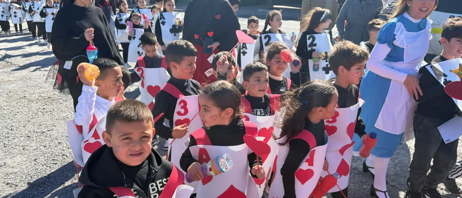 El 'CEIP Pablo Ruiz Picasso' ha celebrado en la mañana de este miércoles su habitual desfile de carnaval. No solo en el interior del centro, sino también por la barriada de Benzú, que ha disfrutado con sus pequeños carnavaleros recreando la inmortal "Alicia en el país de las maravillas" de Lewis Carroll