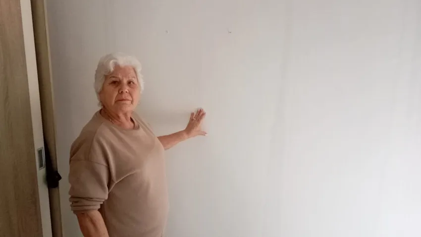 Un piso más arriba quien vive es Pilar. Madre de dos hijos, cuenta que la situación es muy parecida en su casa. "Me he levantado y he visto unas grietas enormes en el techo, en la habitación de mis hijos, y también he tenido que colocar cubos y toallas por todo el piso. No es una ventana que se quede abierta, es que tengo miedo de que se nos caiga el techo encima, literalmente".