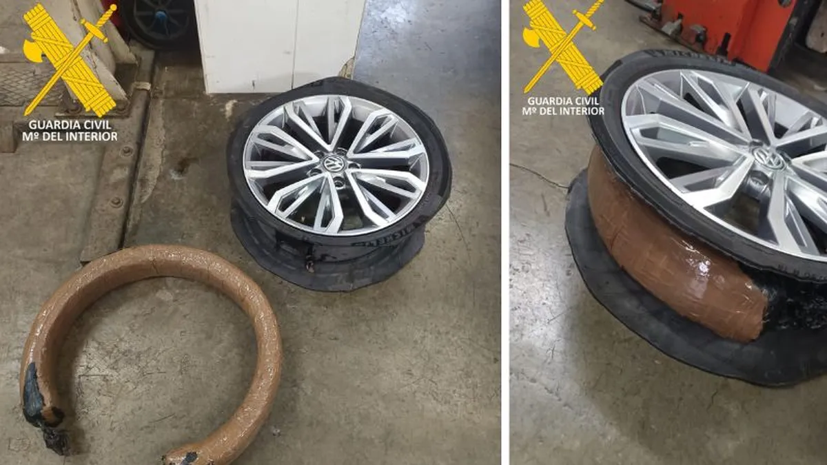 La intervención tuvo lugar durante un control rutinario en el que los agentes detectaron indicios que despertaron sospechas sobre el vehículo inspeccionado. Tras una comprobación más exhaustiva, la Guardia Civil localizó la sustancia estupefaciente cuidadosamente escondida en las ruedas, un método empleado para dificultar su detección durante los controles.