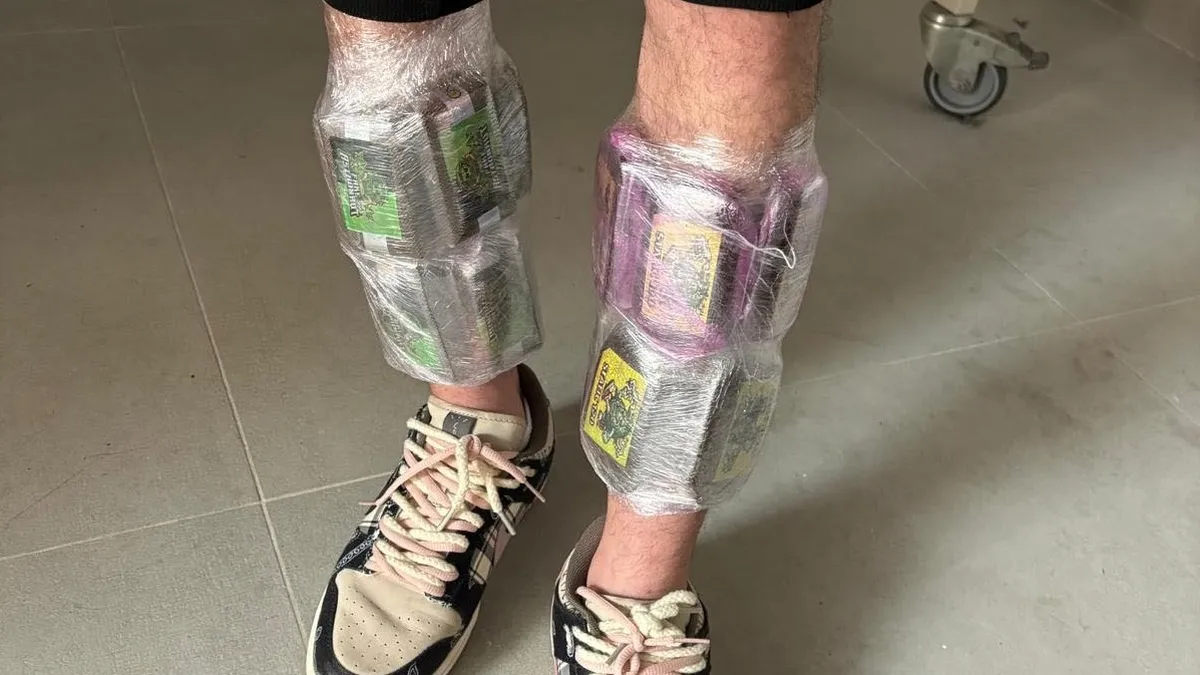 Durante la inspección, se descubrió que el sospechoso portaba 15 tabletas de una sustancia de color marrón, identificada posteriormente como hachís, encontrándose adosada a ambas piernas, lanzando un total de 1480 gramos tras su pesaje.