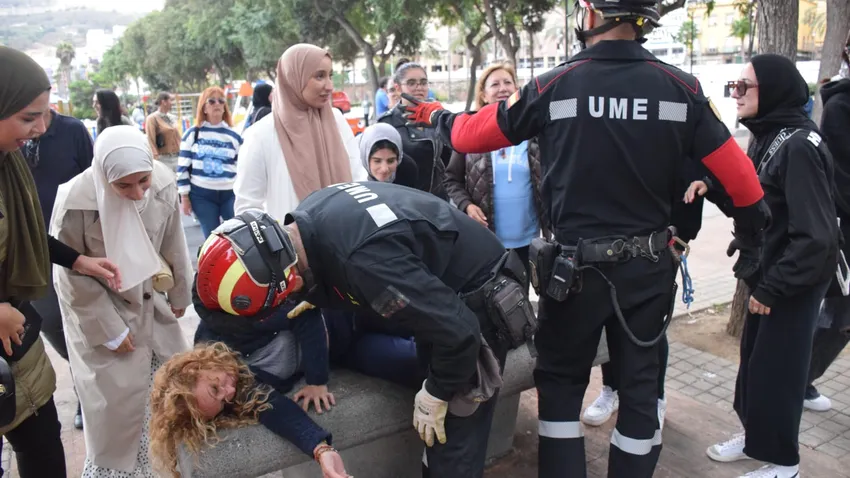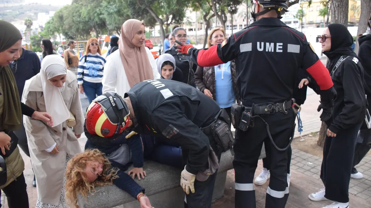 Antes de las nueve de la mañana de este miércoles, todas las miradas estaban puestas en el parque Juan Carlos I (recinto ferial), donde se realizaba el primero de los simulacros, en este caso de control de masas, donde se simulaba un accidente de aéreo de helicóptero, participando unos 50 actores de la Escuela de Arte de Ceuta. Un ejercicio espectacular que puso en vilo a toda la población ante la gravedad del suceso, aunque afortunadamente, estábamos hablando de un simulacro que, una vez más, puso de manifiesto la excelente preparación de los miembros de la UME.