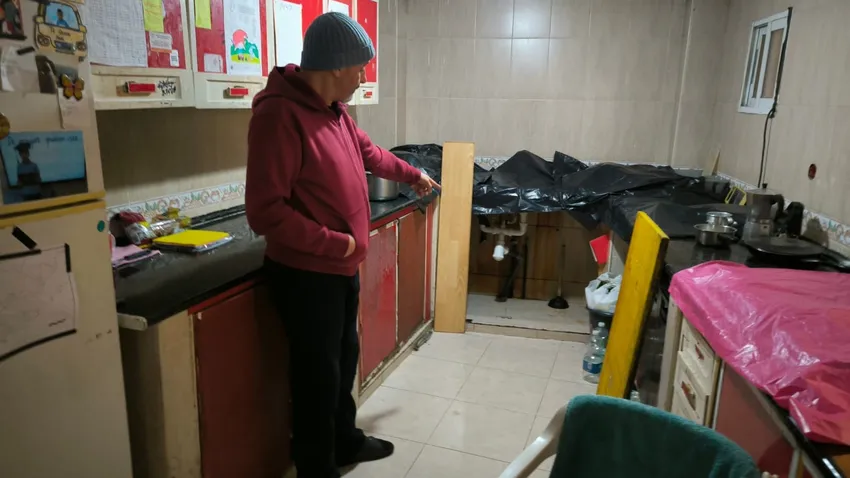 Cruzando un pequeño patio y el arco de una puerta solo tapada por una manta, Abdelaziz hace el gesto de invitación a entrar a una casa de menos de 20 metros cuadrados habitables en la que resulta difícil imaginar que este padre haya criado a cinco niños durante 15 años. La vivienda ya no está encharcada, pero aún presenta los destrozos de cuando “petó“ el pasado 7 de febrero: humedades, moho, roturas en losetas y esquinas, una cocina inservible... Dos de los niños y una muchacha, sus hijos menores de edad, están alojados en el Hotel Puerta de África desde entonces y a la espera de la reparación del domicilio.